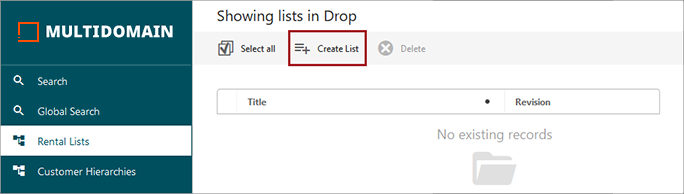 - On the Web UI screen, from a valid parent node of a list processing object type, click the 'Create List' button.