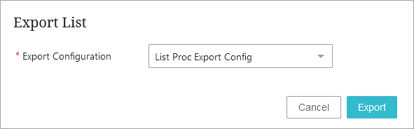 Select a saved export configuration that is compatible with the type of the processed list and an Export process card is displayed on the list processing screen.