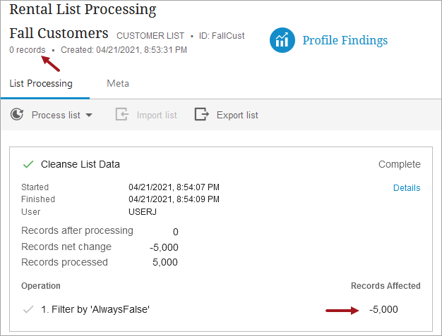 Important: While there is no method to revert a list processing operation after it has been completed, you can upload the original file to a new list entity and apply all processing operations again.