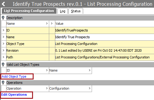 Note: This list processor configuration can only be executed on selected list object types. Without an object type value, the List Processing Configuration is not a selectable option in the Web UI 'Process list' dropdown.