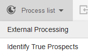 Selecting the 'Start' button begins the process and a new process card titled 'Identify True Prospects' is presented with the progress of the list processing.