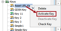- Re-activate the Asset URL Key by selecting the key, right-clicking, and selecting Activate Key.