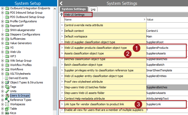Since the Asset Download component is geared toward supplier users who work exclusively in Web UI, a number of Web UI Settings must first be specified in System Settings that are related to supplier classification hierarchies. This section highlights the three primary Web UI settings that are needed to enable Asset Download. The full list of these settings is detailed in the Web UI Settings topic in the System Setup documentation.