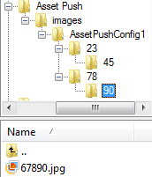 Rather than using the file structure in STEP, an asset push configuration specifies how to organize the generated external file structure via a Relative Path Template (RPT). Typically the folder structure is based on the asset's ID, which cannot be changed and ensures the external structure is stable and free from accidental duplication. This means that it is not possible for the same image to occur in multiple folders in the external structure (unless multiple configurations are used).