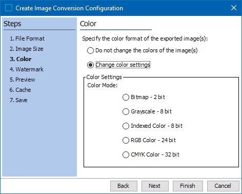 - For the Color step, select Do not change the color of the image(s) to ensure that no changes will be made to the color of the images upon export.