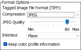 Note: The 'Keep color profile information' option available with some formats (JPEG, WEBP, PNG, and TIFF) can override other selections made in the conversion configuration. If results of the conversion are not as expected, try disabling the selection (which is checked by default).