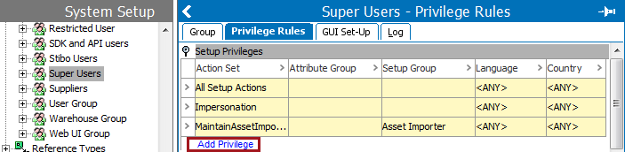 - Navigate to the 'Privilege Rules' tab, and under the 'Setup Privileges' flipper, click Add Privilege.