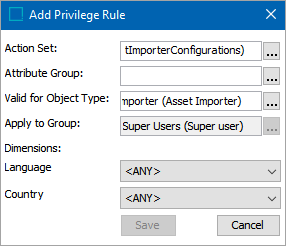 - Select 'New Action Set.' In the window that appears, enter 'MaintainAssetImporterConfigurations' in the ID parameter, then click Create.