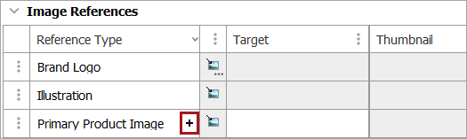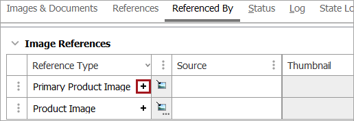 If it is not already open, click on the 'Image References' flipper to open it. Click on the + sign for 'Primary Product Image' to link the image to the product.