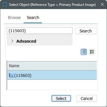 Search for and select the appropriate image. By selecting 'Primary Image,' it denotes that the image is the exact representation of the product. Once a Primary Image has been linked to a product, a thumbnail of the image will appear when the product is selected.