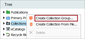 - Depending on where you want the collection group to live, either right-click the top-level Collections node or an existing collection group in Tree and select Create Collection Group....