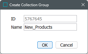 - In the 'Create Collection Group' dialog enter a Name (ID is autogenerated) for the new group.