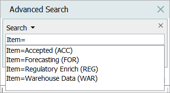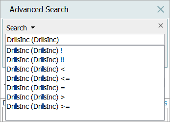 Start entering an attribute name or ID, then select the relevant attribute from the typeahead menu, to display attribute name in the text field. Enter a search operator or enter a SPACE and select an operator from the typeahead menu and enter the value to search for.