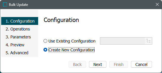 Click the Bulk Update button () to display the Bulk Update wizard. The search result is set as the dataset. For more information on bulk updates, refer to the Bulk Updates topic in the Bulk Updates documentation.