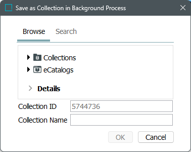 Click the 'Save as Collection' button () and specify the location, ID, and Name, of the new collection. For more information on collections, refer to the Collections topic in the Getting Started documentation.