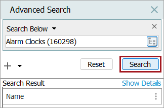 The Search Below Search Criteria allows you to limit your search result to objects below a specified node in the System Setup or Tree tab hierarchy.