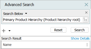 1. Click the selector button () to display the Search Below... dialog. By default the Primary Product Hierarchy is selected as search criteria.