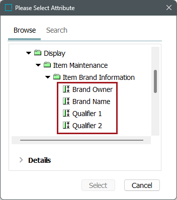 Note: Description attributes are displayed under the product hierarchy node in the folders for which they are valid.