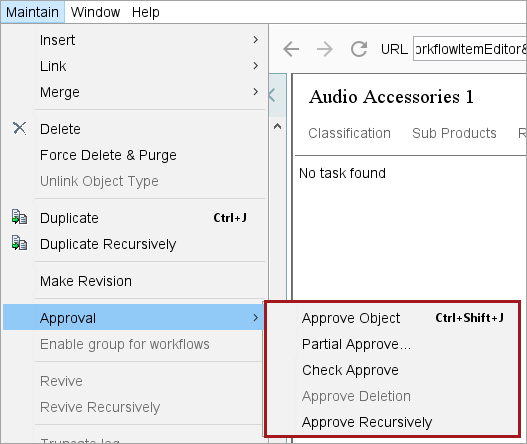 2. Right-click the selected object and click Partial Approve. Alternatively, from the Maintain menu, click Approval, and click Partial Approve.