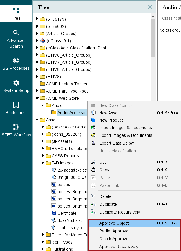 To approve an object, right-click on the object and select one of the available approval options.