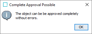 Depending on Approve privileges, the following warnings and dialogs may be displayed after clicking Approve Object or Partial Approve.