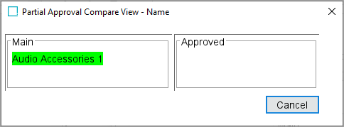 • To easily check differences in the Main and Approved Workspaces, select Partial Approve, as discussed in the Partially Approving an Object section below.