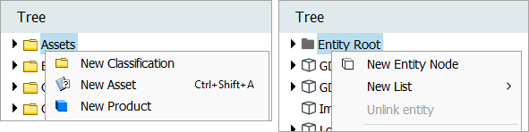 Objects can be manually created in the Tree via right-clicking or using the Maintain menu.