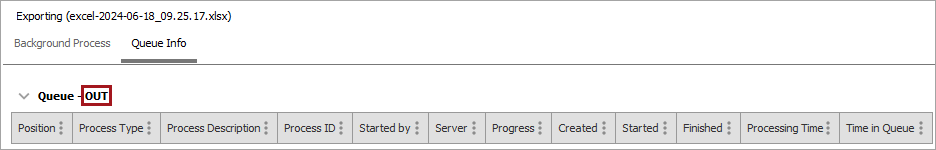 The name of the queue being used for the process is displayed within the section title.