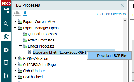 Intermediate BGP data files are stored temporarily and do not need to be manually deleted. To download the intermediate data, right-click a BGP process and click 'Download BGP Files' from the context menu. If the BGP files are too large to download, submit a ticket in the Stibo Systems Service Portal to request assistance.