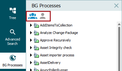 Background processes are based on the type of activity, for example 'Approve recursively,' 'Bulk update,' 'Create Collection,' 'Download Report,' as well as 'Translation,' which is shown in the image below.