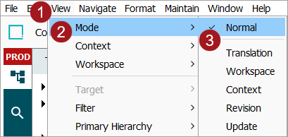 Translation mode shows the split view of the different contexts for objects. To use the Translation mode, select a Source context from the View menu. Online Translation can be done from this Translation Tab. Fields highlighted in green color can be translated within STEP from this Translation Mode. For more information on translating data into other languages, refer to the Translations documentation.