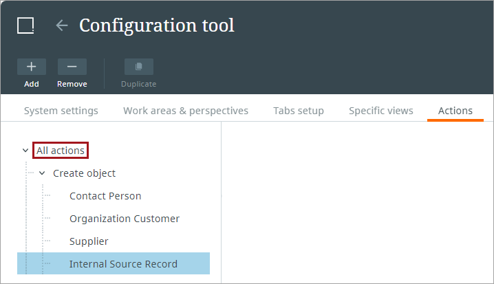 Removing Configuration Tool Actions