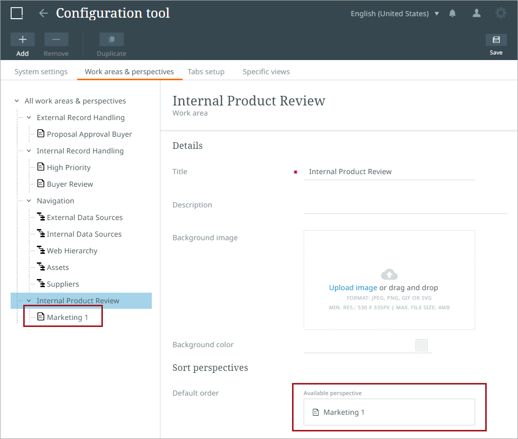 Configuration Tool: Creating Perspectives and Work Areas