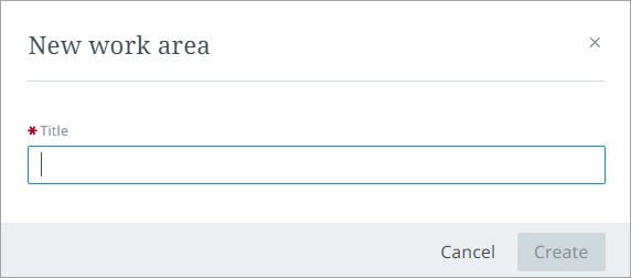 Select 'New work area.' A 'New work area' dialog will display. Mandatory fields will be marked with an asterisk '*'. Users cannot create a work area without completing the mandatory fields.