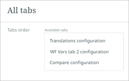 Click 'All tabs' to view all existing tabs. Tabs can be reordered by clicking and dragging the order displayed in the 'Available tabs' display.
