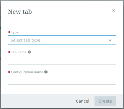 Provide a name for the 'Tab name' field. A value will auto-populate for the 'Configuration name' field derived from the value provided for the 'Tab name' field. Users can revise this value as needed.