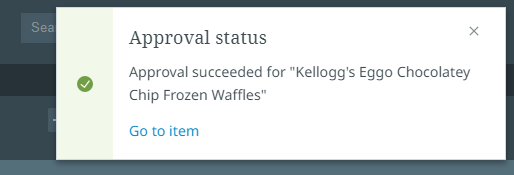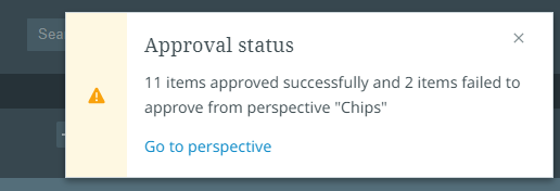 In case of issues, a meaningful error displays when you approve a product. For example, if you do not to have the privilege to approve the product(s), you will receive a missing privileges message in a pop-up notification or within the notification center once the approval process starts. Another example of an error message is shown below: