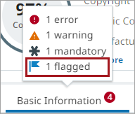 Note: The location of the attributes with incomplete values (as determined by the metric) can be located on the details page by first toggling the Display on side panel switch, and then either hovering the cursor over the flag icon indicator in the side panel, or clicking on the specific attribute link.