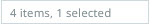 A footer displays at the bottom of the table that states how many assets are in the gallery, and how many of those are currently selected.