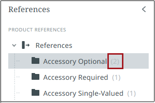 Each reference type containing references displays a gray numeral in parentheses (1-9) to the right of the reference type name indicating how many references there are for that reference type for that object. If there are more than 9 references, a '9+' will display.