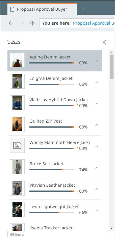 All items within the currently selected perspective are listed in a pane on the left-hand side of the screen called the item list pane. From this pane, objects can be selected from the task list in order to view their details.