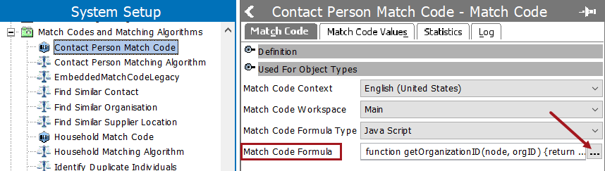 In the Match Code object, on the Match Code tab, for the Match Code Formula parameter click the ellipsis button (