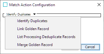 The choice of match action defines the entire workflow around the golden records. The following match actions exist and are paired with the following component models and matching functionality: