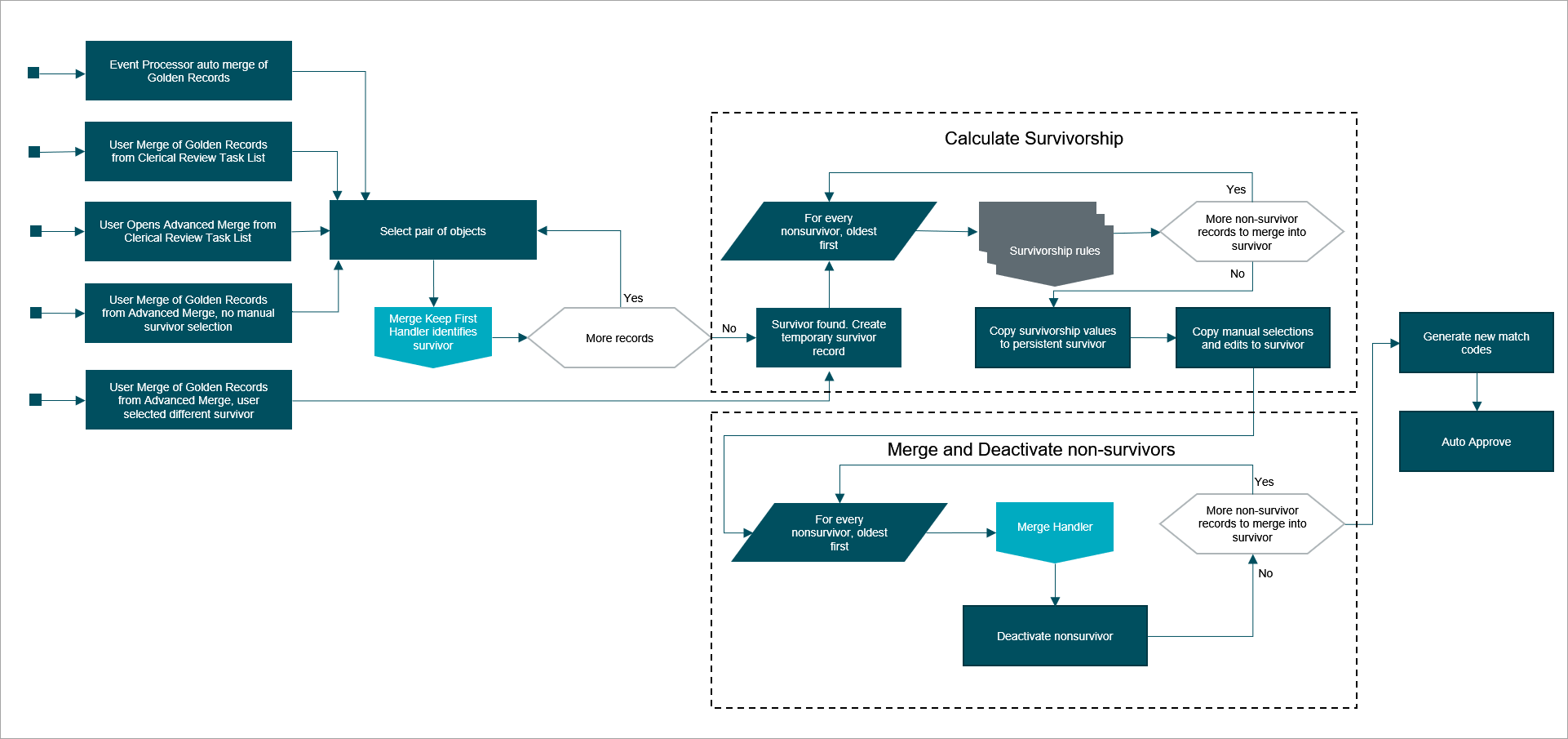 For more detail on the flow of these merges, refer to the topic Match and Merge Flow Details.