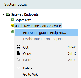Navigate back to the node under System Setup, right-click, and select 'Enable Integration Endpoint.'