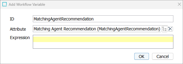 In the Add Workflow Variable dialog, type in 'MatchingAgentRecommendation' for the ID.
