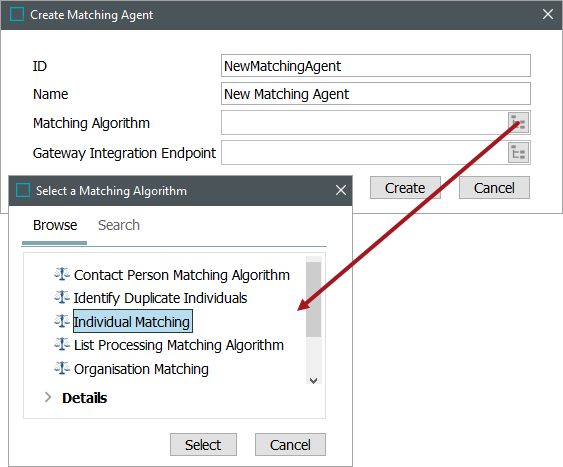 3. Click the ellipsis button () next to the Matching Algorithm parameter to select a matching algorithm.
