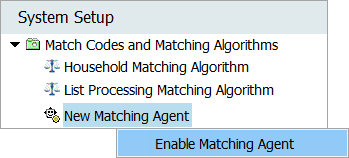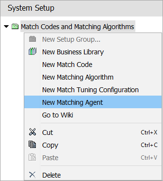1. In System Setup, navigate to the setup group used for matching algorithms, right-click the parent node, and select 'New Matching Agent.'
