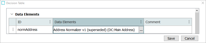 After adding the Address Normalizer in the Data Elements flipper of the Decision Table dialog (defined in the Match Criteria topic), configure it as follows: