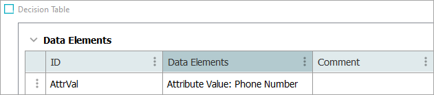 After adding an attribute value data element in the Data Elements flipper of the Decision Table dialog (defined in the topic Match Criteria), configure it as follows: